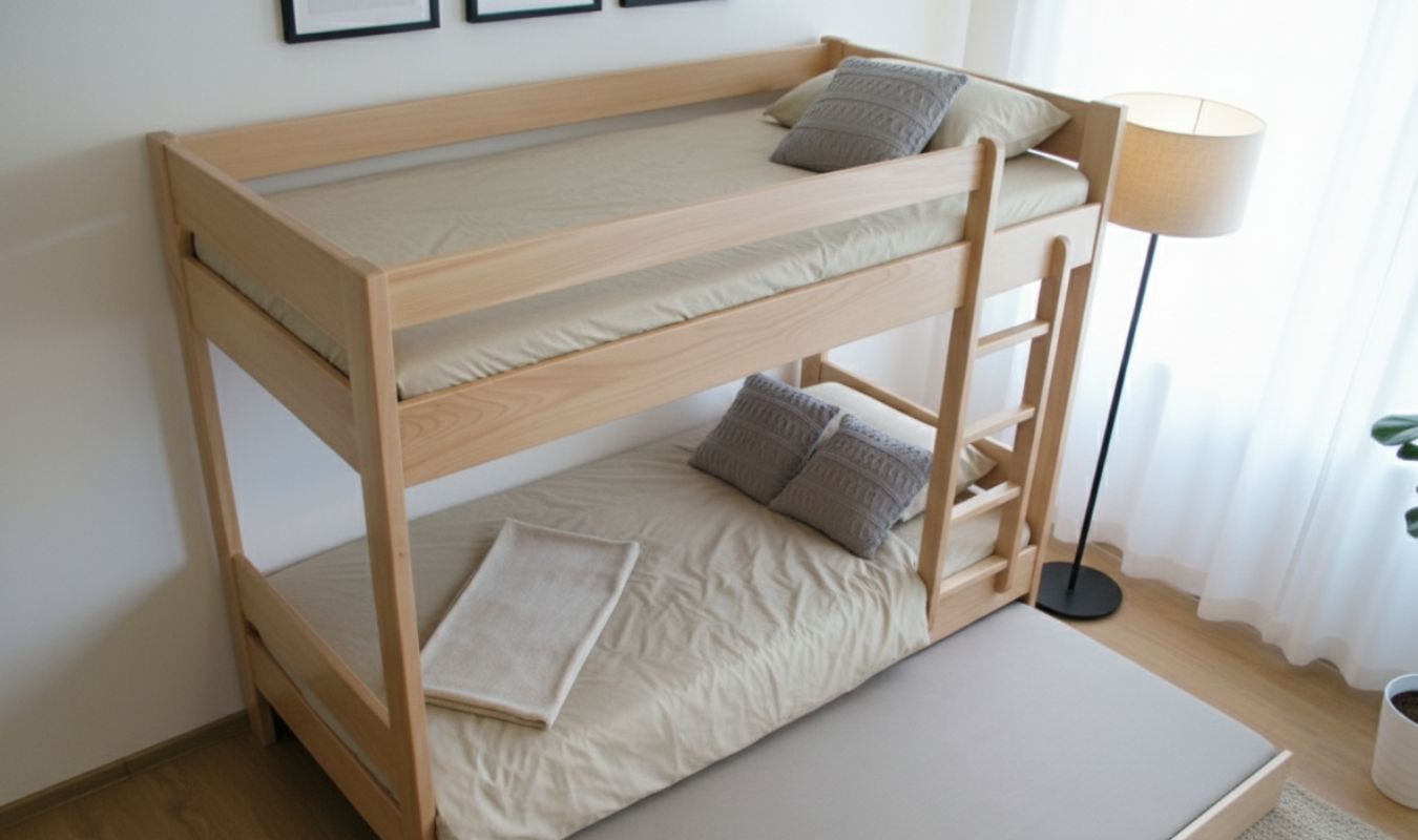 Łóżko Piętrowe Drewniane Bukowe – Klasyk 3-osobowe